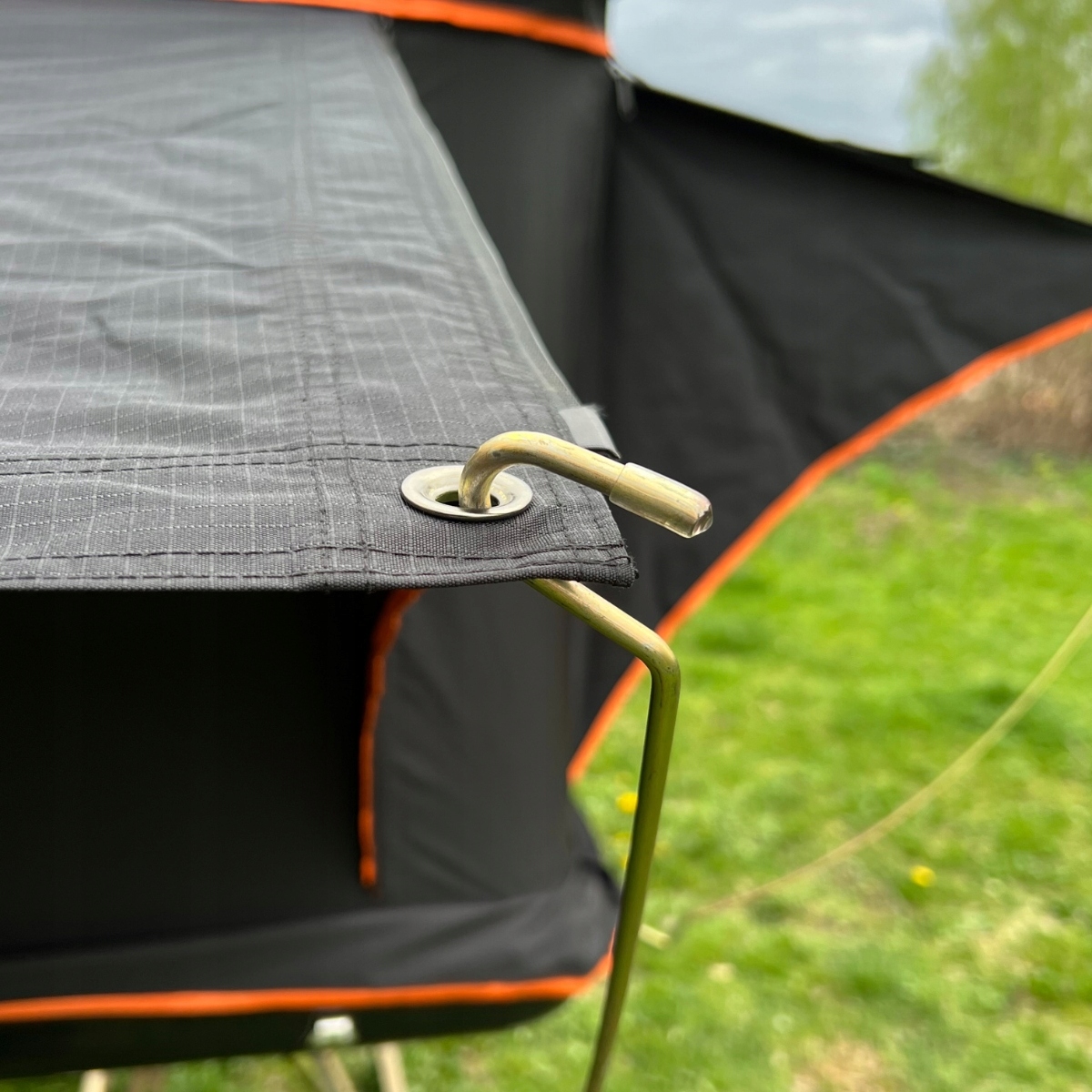 - Namiot wyposażono w LED-y, moskitiery oraz aluminiową teleskopową drabinkę z antypoślizgowymi stopniami.