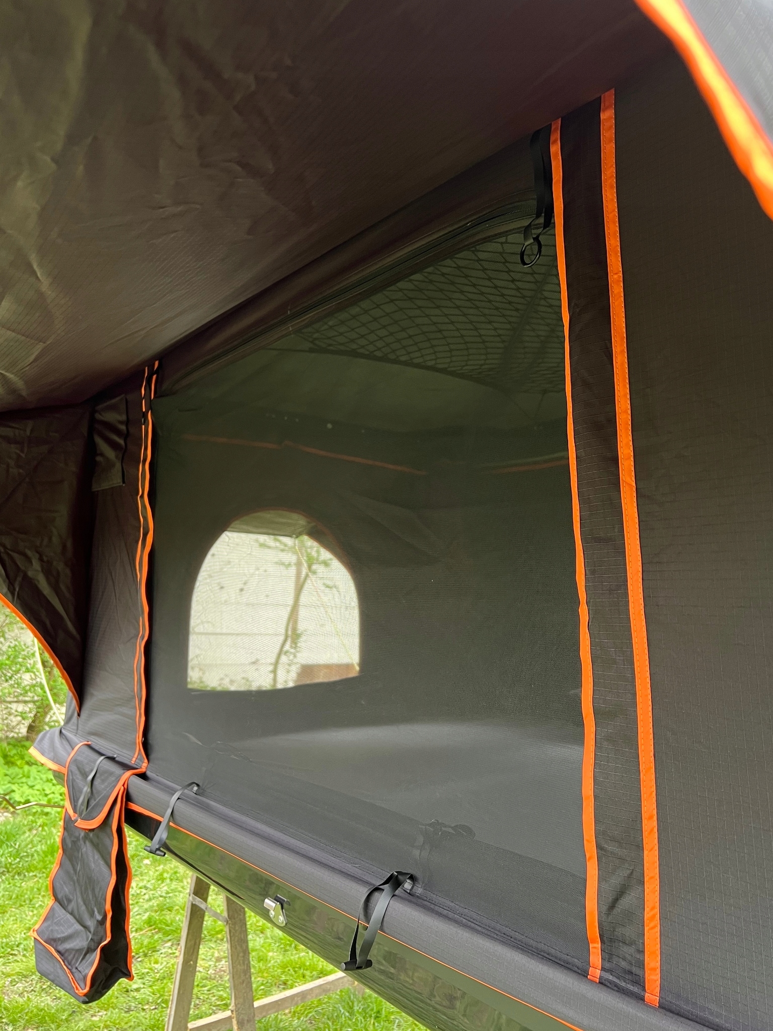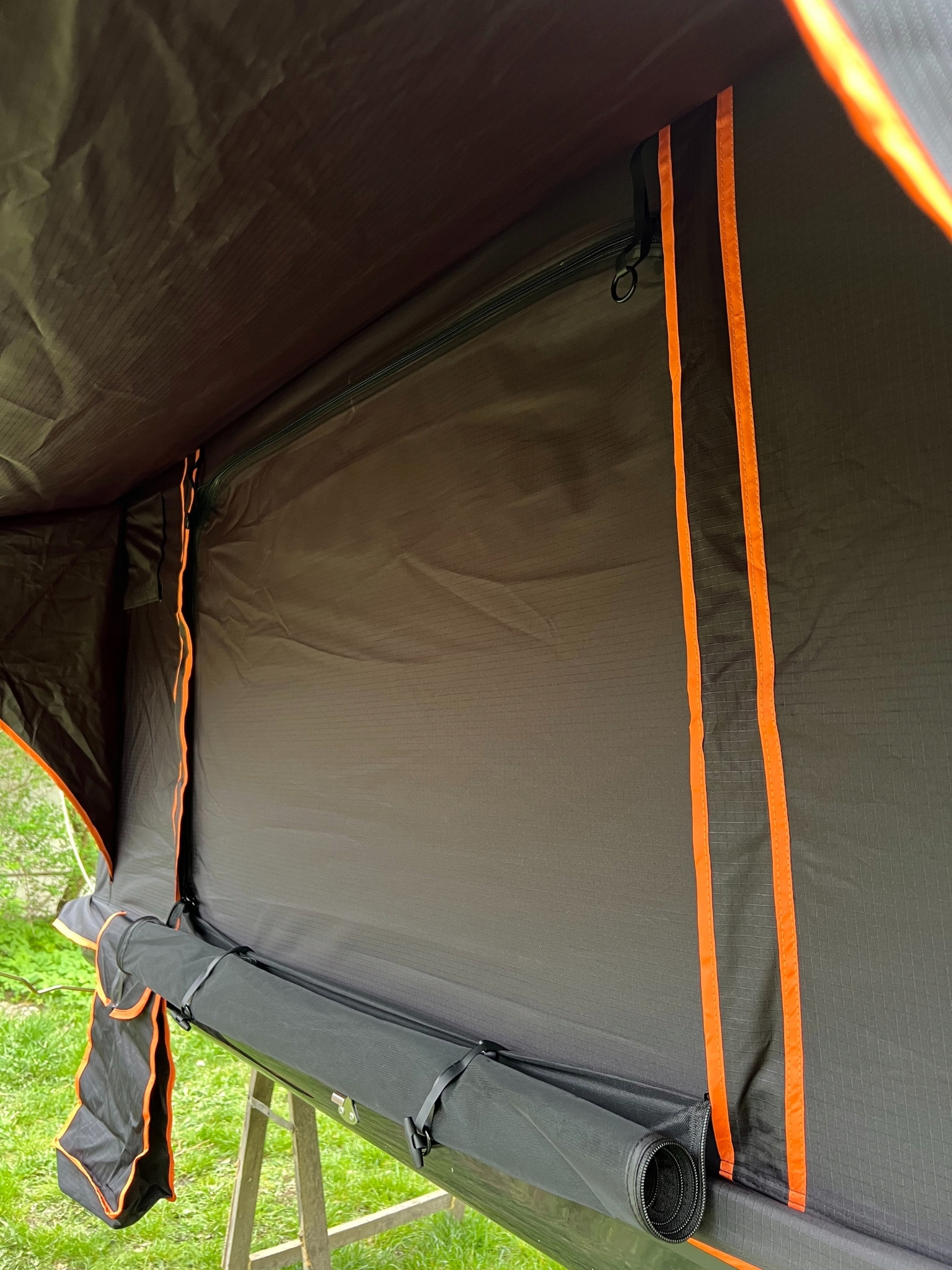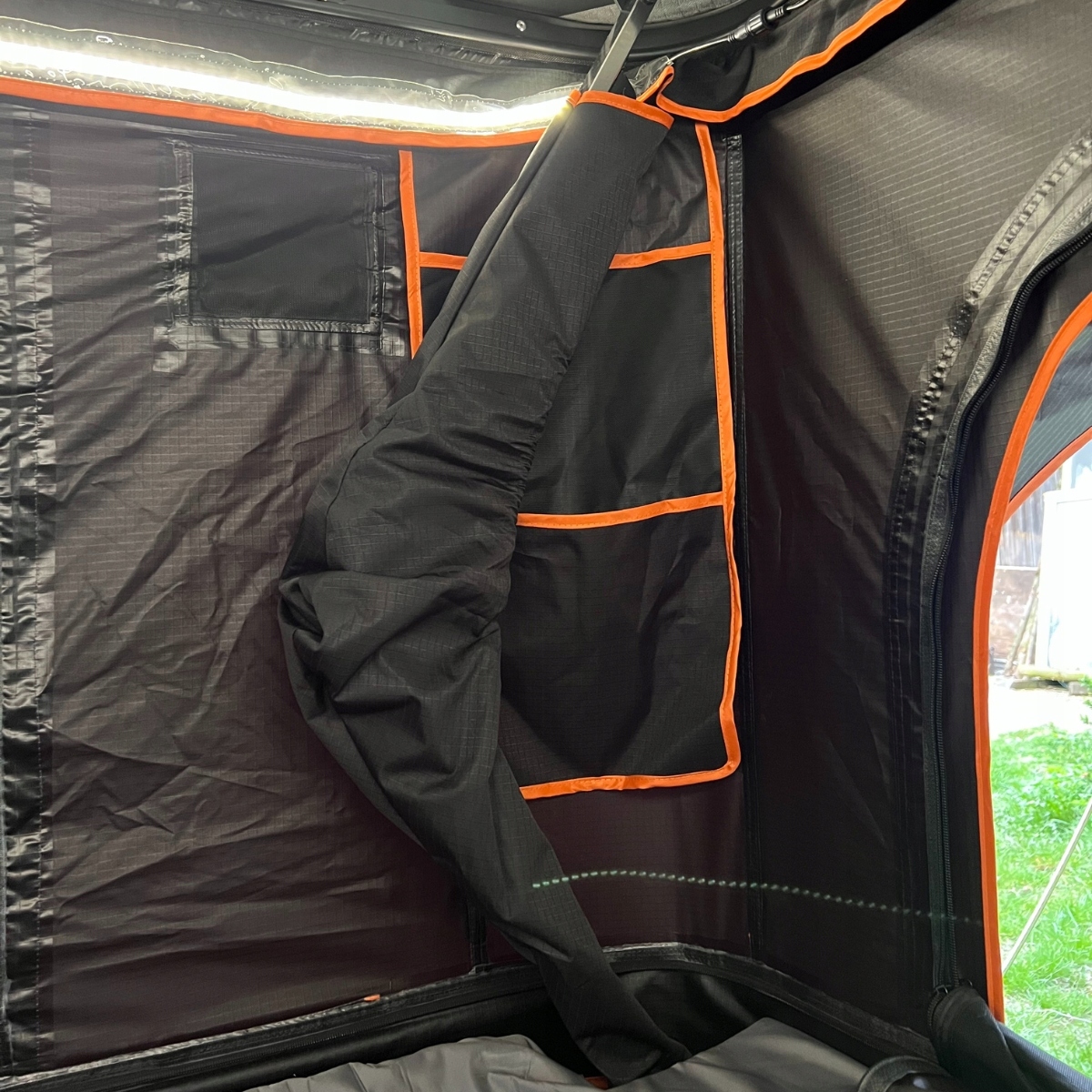 Hydrauliczny mechanizm otwierania. Wysoka wodoodporność 3000 mm. Materac z pranym pokrowcem. Moskitiera. Wbudowane oświetlenie LED. Kompaktowy po złożeniu. Pasuje do większości aut z relingami.