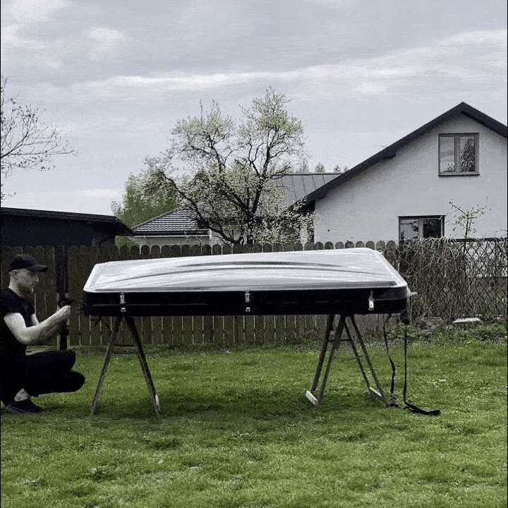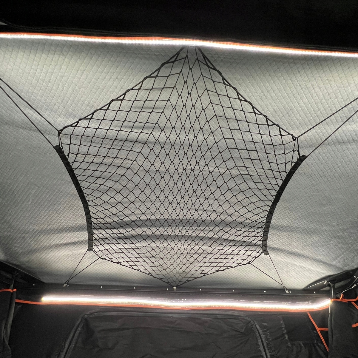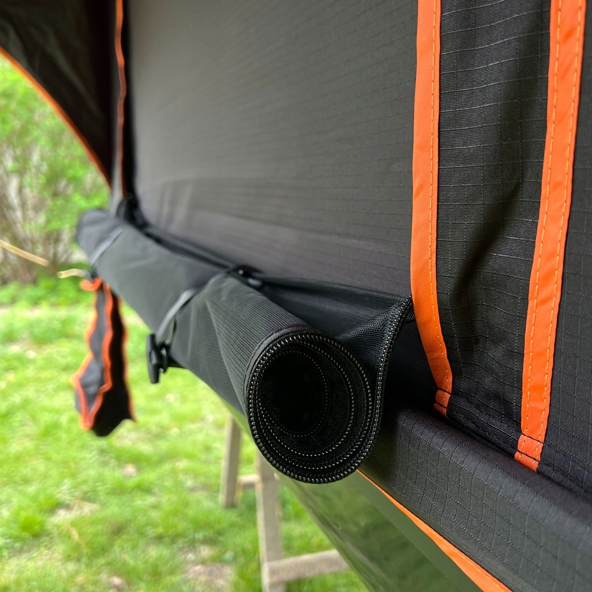 Hydrauliczny mechanizm otwierania. Wysoka wodoodporność 3000 mm. Materac z pranym pokrowcem. Moskitiera. Wbudowane oświetlenie LED. Kompaktowy po złożeniu. Pasuje do większości aut z relingami.