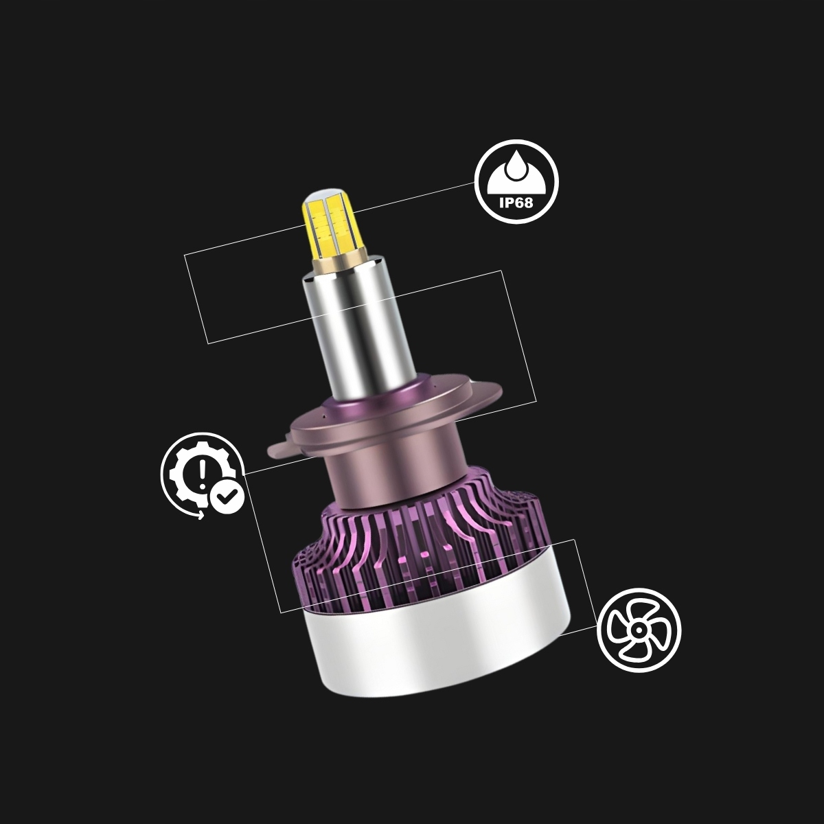 - Canbus: Brak błędów spalonej żarówki, brak zakłóceń radia FM i CB, oraz brak efektu mrygania.