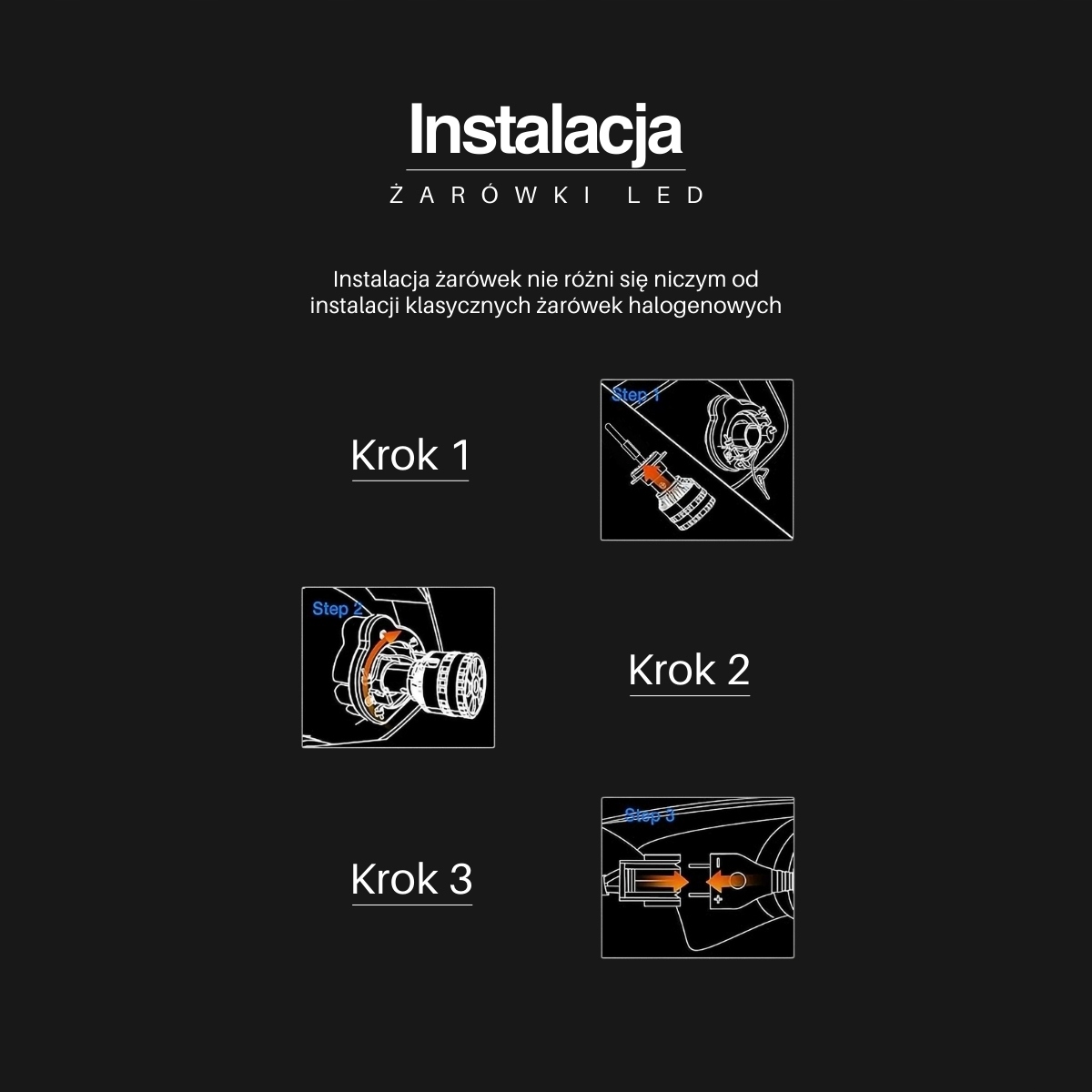 - Canbus: Brak błędów spalonej żarówki, brak zakłóceń radia FM i CB, oraz brak efektu mrygania.