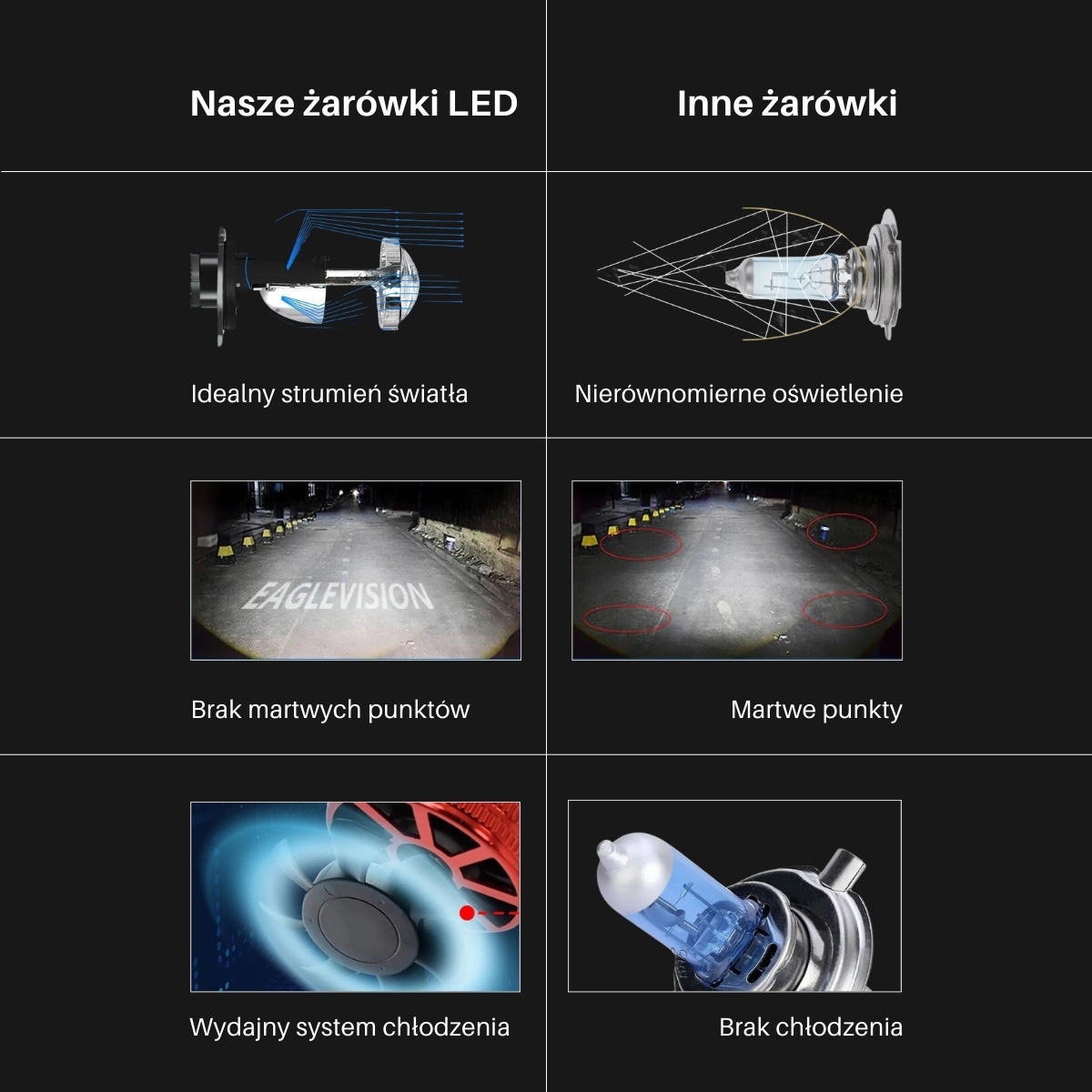 - Kompatybilność z systemami Canbus: Żarówki działają bez błędów spalonej żarówki i nie powodują zakłóceń radia FM i CB.