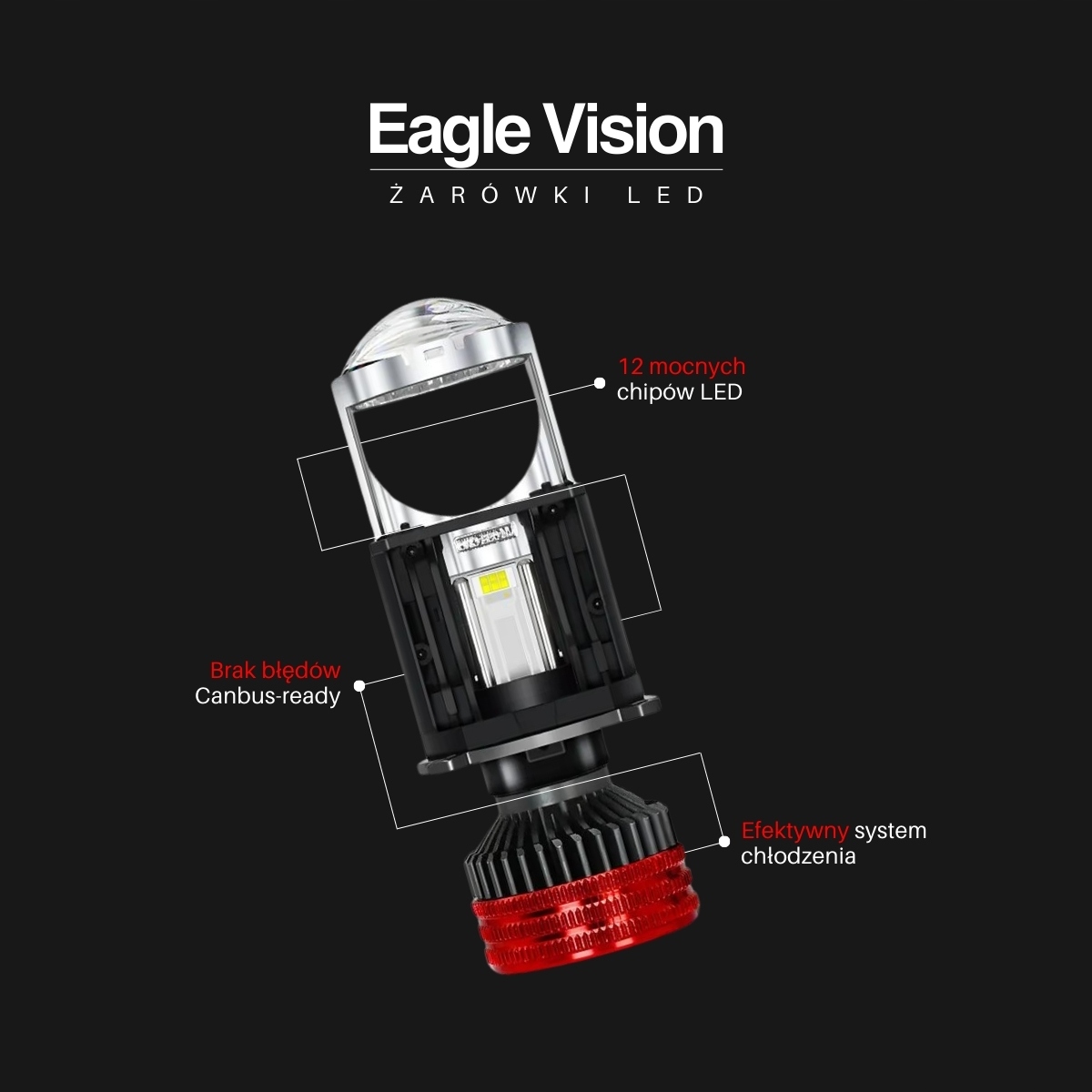 Żarówki LED H4 EagleVision DualX BiLED Soczewka 90W 9000LM | CANBUS | 6000K